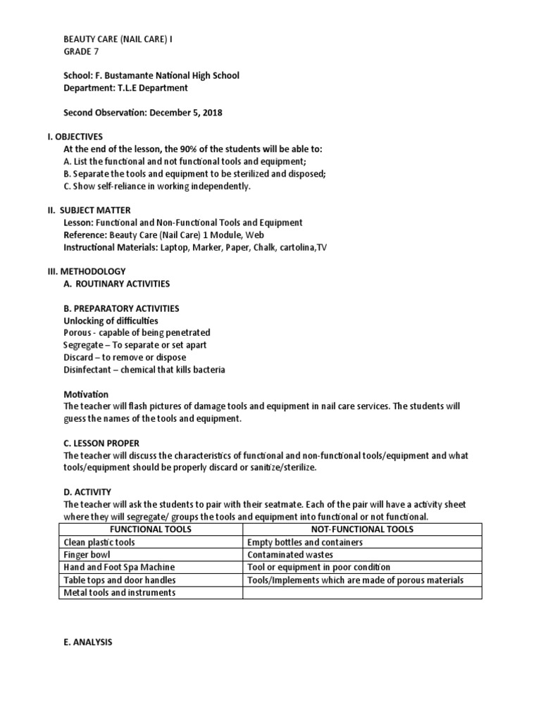 Functional And Non Functional Tools And Equipment In Nail Care Services Pdf Tools Waste